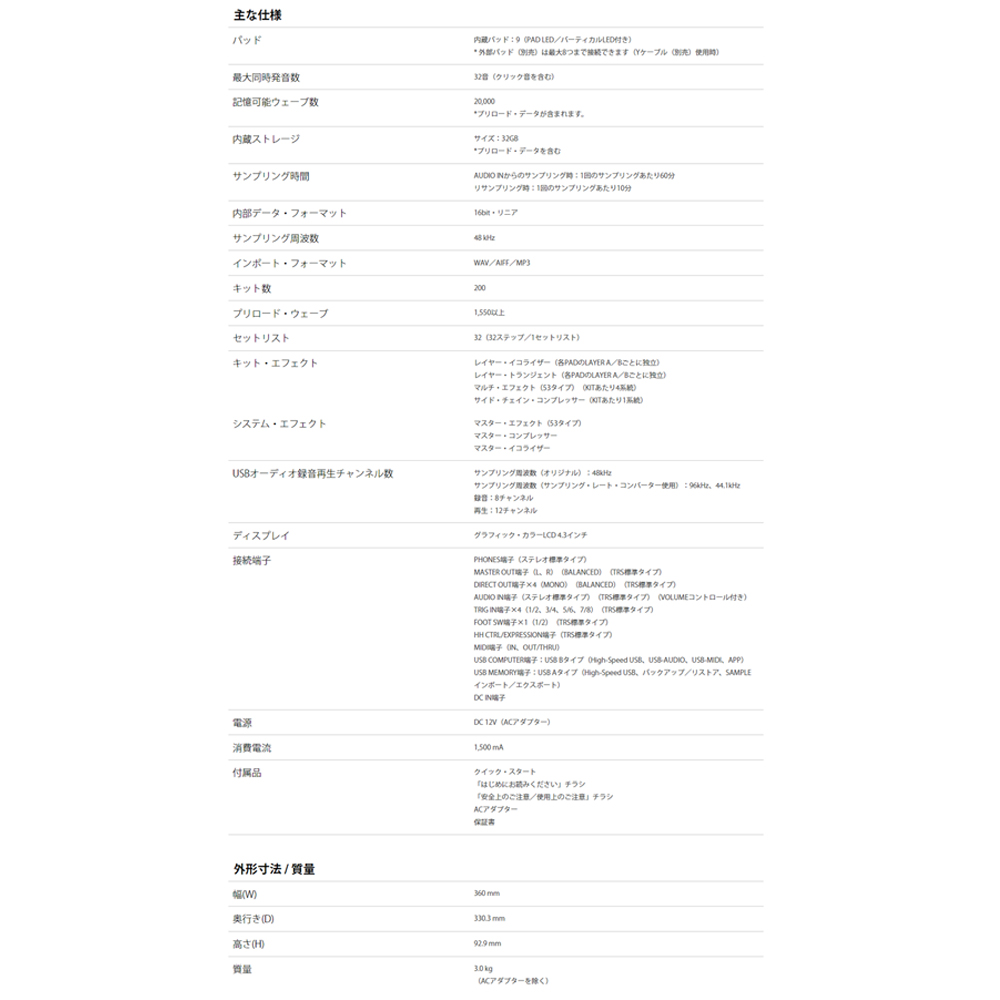 大容量の32GBメモリ、48kHzのオーディオ再生、演奏性を向上させたパッド、簡単にサンプルのインポートやキットの編集ができる専用アプリにより、あらゆるステージにおいて強力なパートナーとして活用できます。