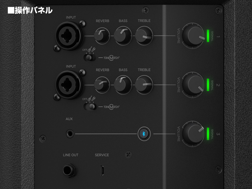 ・Bluetooth接続に対応。オケやBGMをワイヤレスでのでストリーミング再生に対応(ch3)