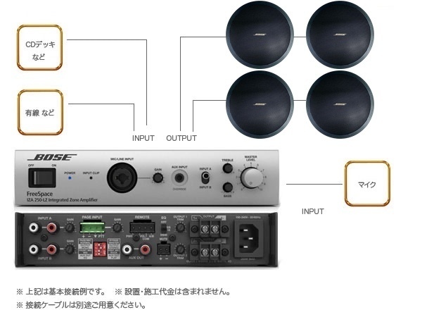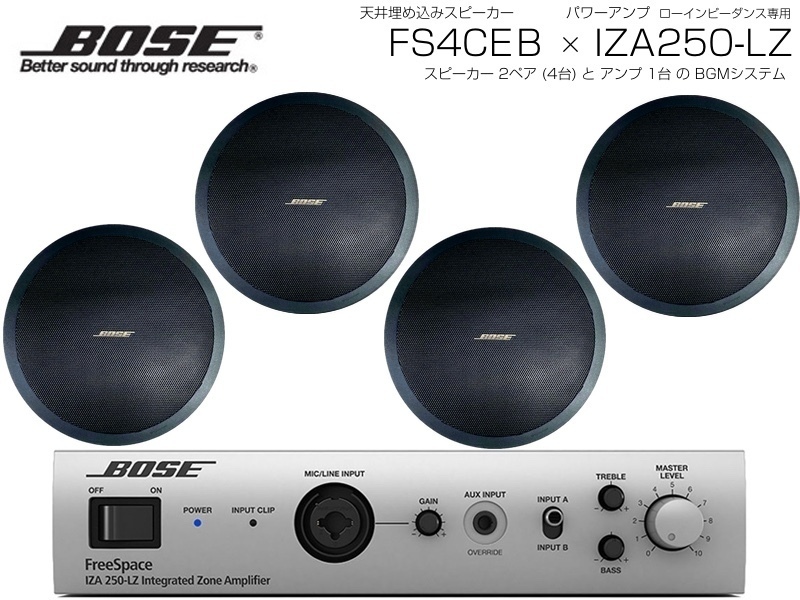 BOSE ボーズ FS4CEB 2ペア ( 4台 ) 天井埋込 ローインピ BGMセット( IZA250-LZ v2) 【ローン分割手数料0%(12回迄)】