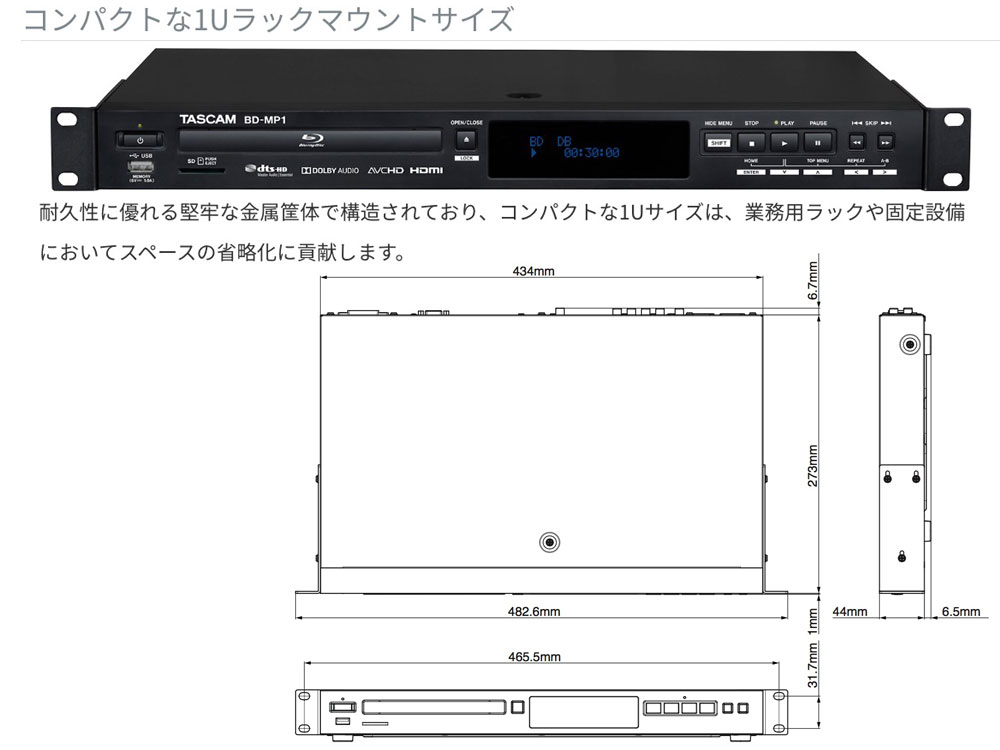 TASCAM タスカム BD-MP1 ◆ 業務用ブルーレイプレーヤー ブルーレイのほかDVD、CD、SDカード、USBメモリの再生が可能 [17%off!]