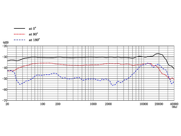 ◆マイクロホン正面に対し60°、90°、120°での周波数特性は全帯域に渡って、レベルがほぼ平行移動。