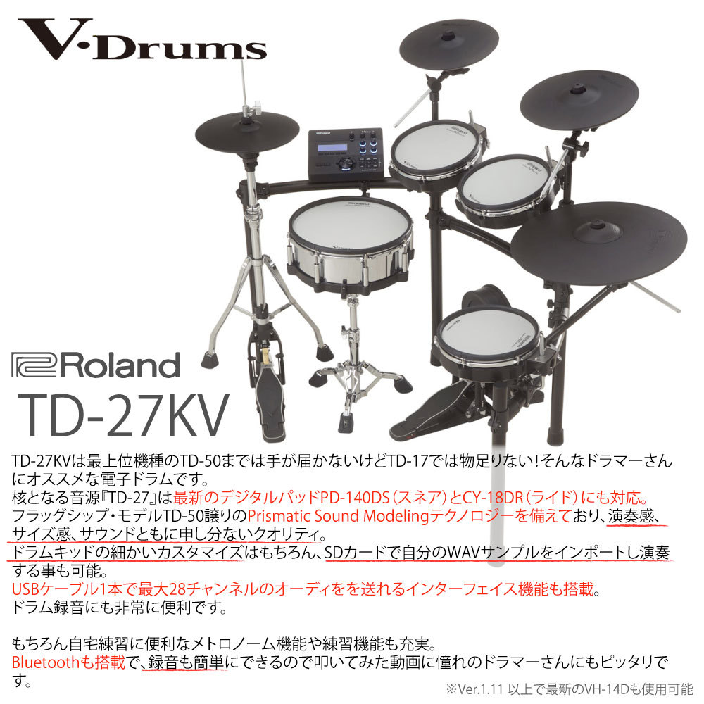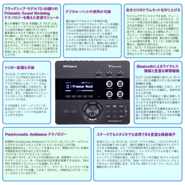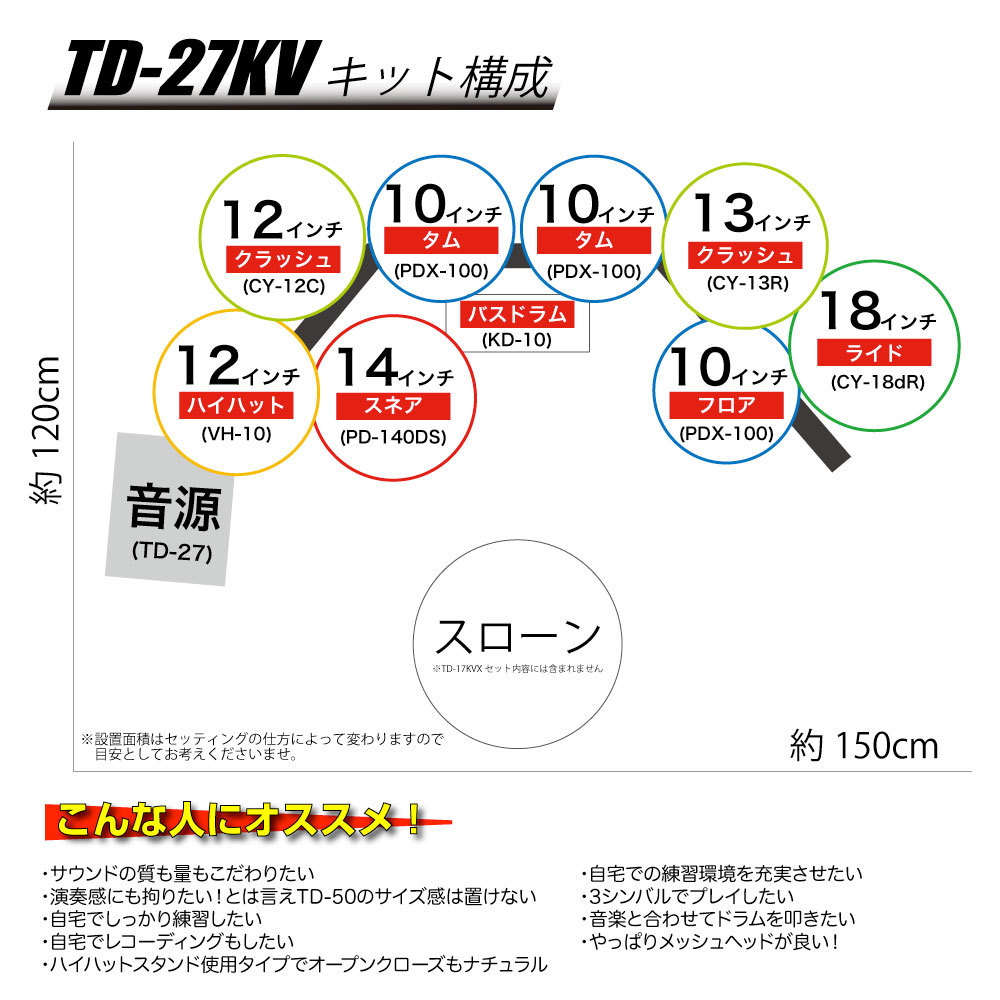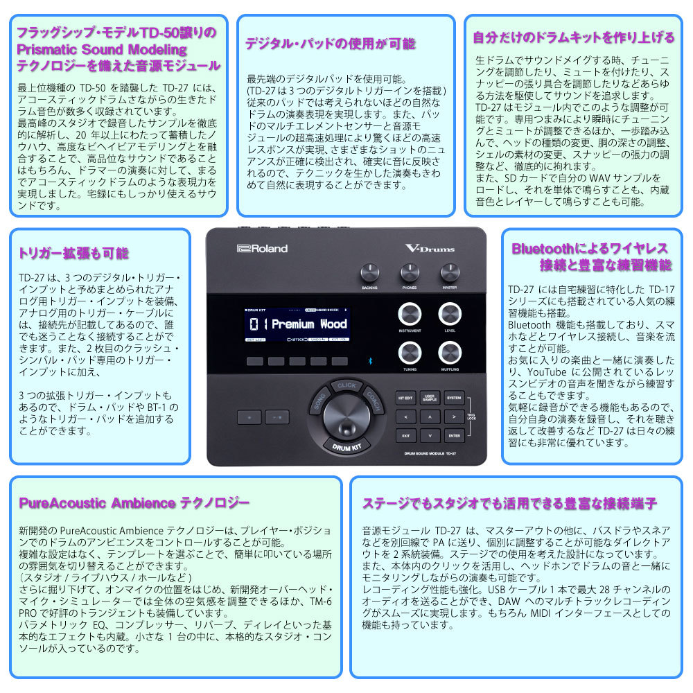 TD-27KV は、フラッグシップ・モデルTD-50 譲りの高い表現力を備えた音源TD-27 を中心に、