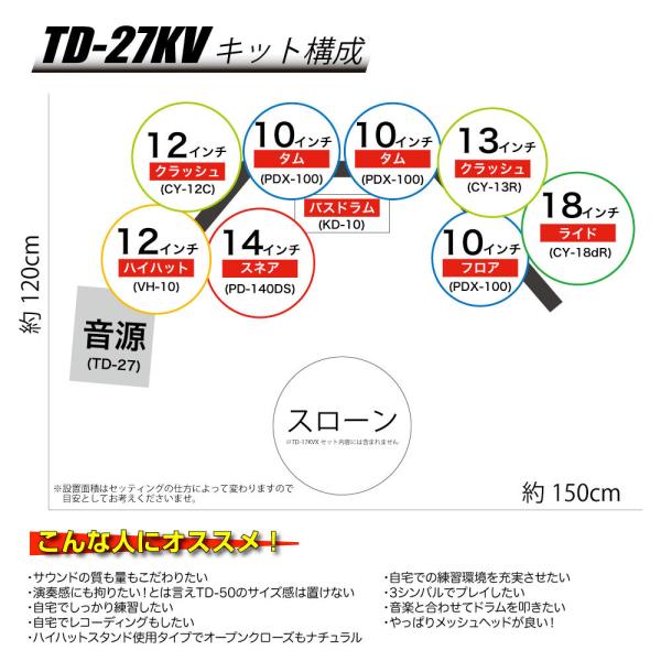 ※キック・ペダル、スネア・スタンド、ハイハット・スタンド、スローン、SD カードは製品に含まれません。