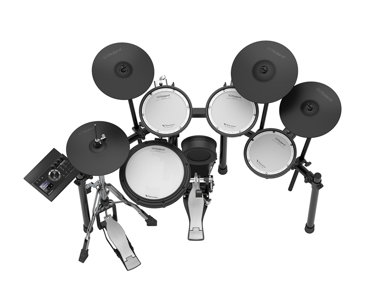 12 インチの大口径スネア・パッド『PDX-12』や、シンバル・パッドが上下動する独立型ハイハット『VH-10』を搭載。アコースティック・ドラムを叩くのに近い感覚で演奏できます。