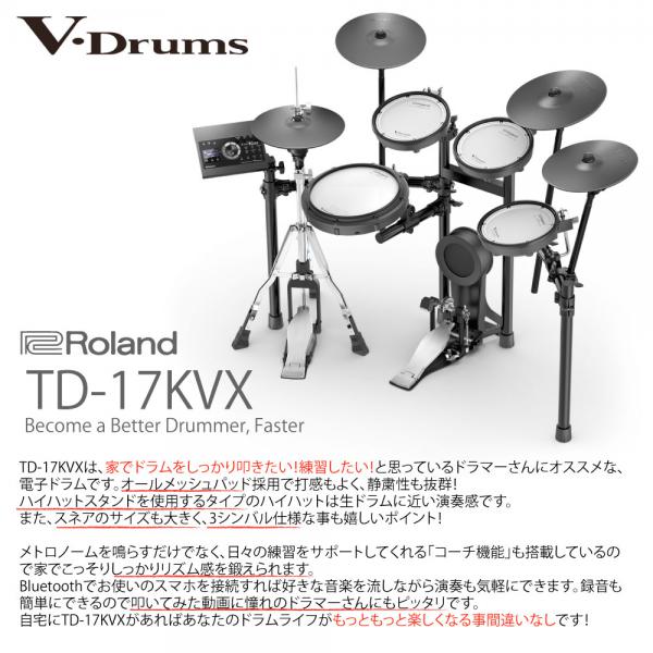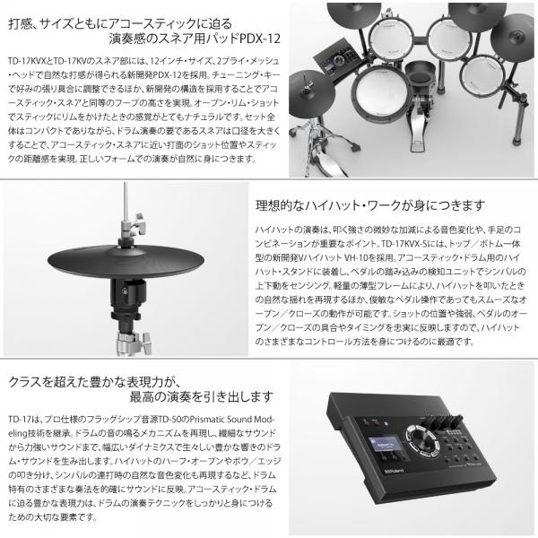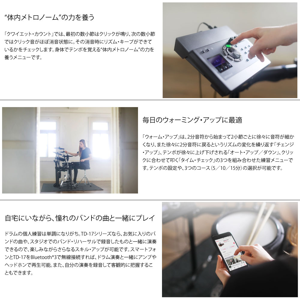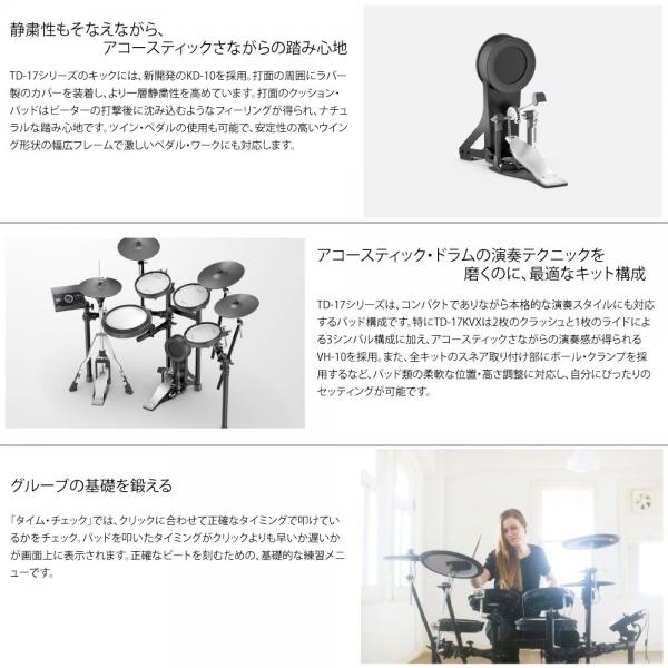 豊富な練習機能や音色カスタマイズ、12インチのスネア・パッドや独立型ハイハットで発売以降好評の『TD-17KVX-S』が、さらに使いやすくバージョン・アップ。