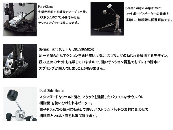 フットボード角度調整:無段階 ※ビーター角度と連動