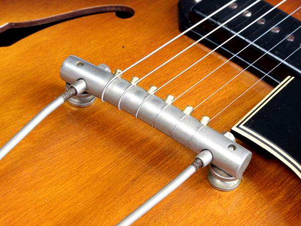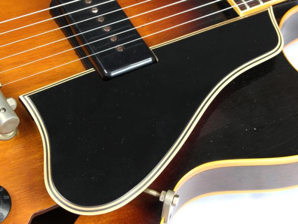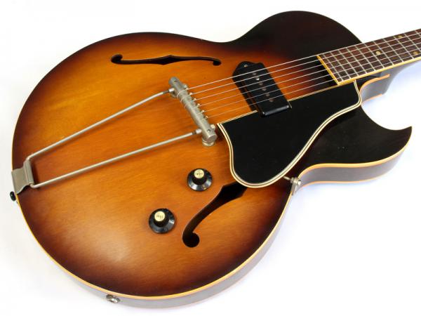 ES-175と同じ16 1/4インチのボディサイズに胴厚1 3/4の薄胴(ES-175の半分程度)が採用されており、ピックアップはドックイヤータイプのP-90がセンターに1基のみという非常にシンプルな構造。フルアコ構造となっており、テールピースはトラピーズ・ブリッジ・テイルピースという初代レスポールにも搭載されていたブリッジと一体化したタイプとなります。1955年から58年の僅かな期間しか生産されていない稀少なモデルです。