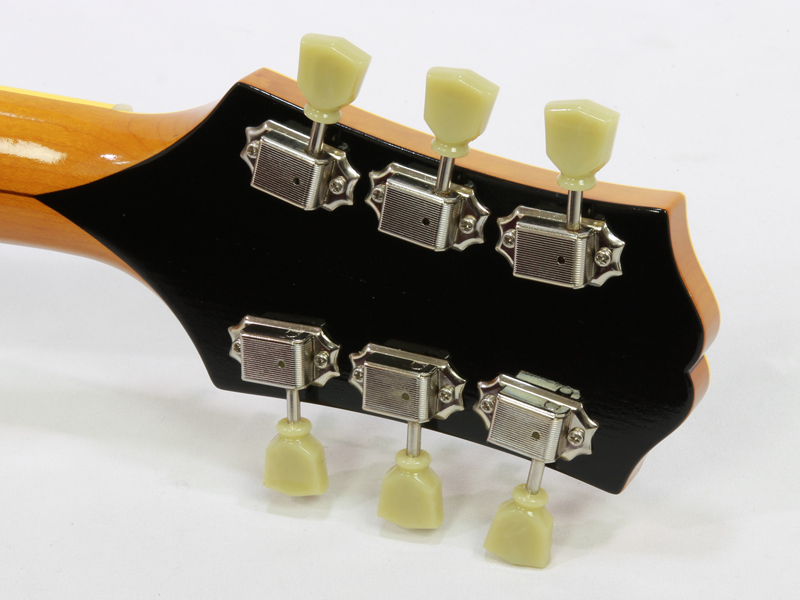 メイプルとスプルースの5P仕上げでボディを組み立て薄いラッカー塗装で上質な鳴りを生み出しています。