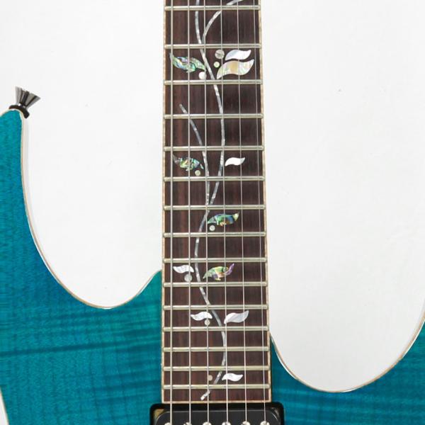 美しく深みのあるフレイムトップ、アフリカンマホガニーボディ、セレクトローズウッド指板にはツリーオブライフのゴージャスなインレイ、ルックスはもちろん素材、つくりも最高峰にふさわしいRGです。