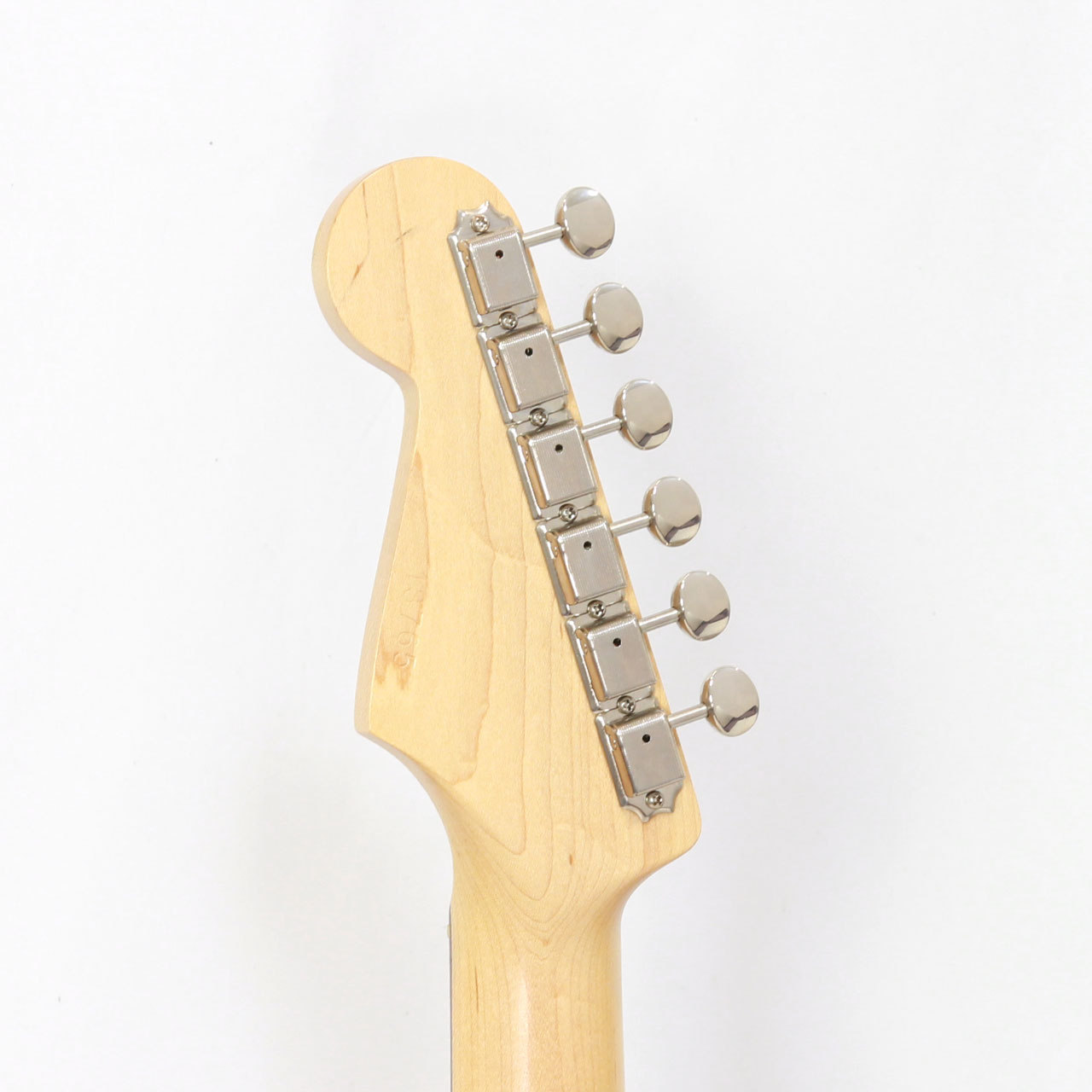 本器は60年代前半のストラトキャスターをイメージしアルダーボディとローズウッド指板のコンビネーション仕上げたモデル。指板には今や希少となっているマダガスカルローズウッドをスラブ貼りで採用。