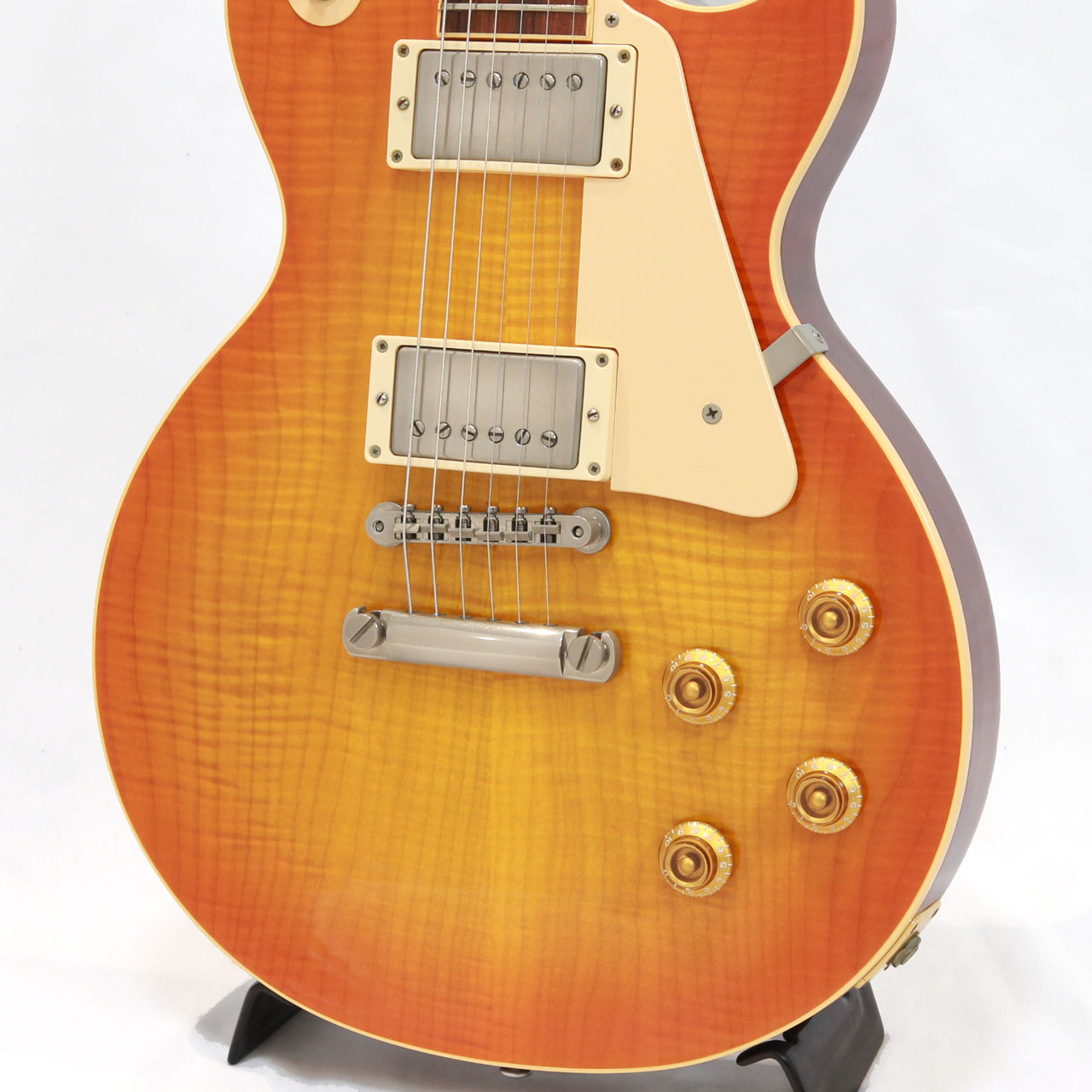 美しいフレイムメイプルトップ、ウェイトリリーフされたマホガニーボディ、60sスタイルで仕上げられたスリムなネックが特徴の1本です。
