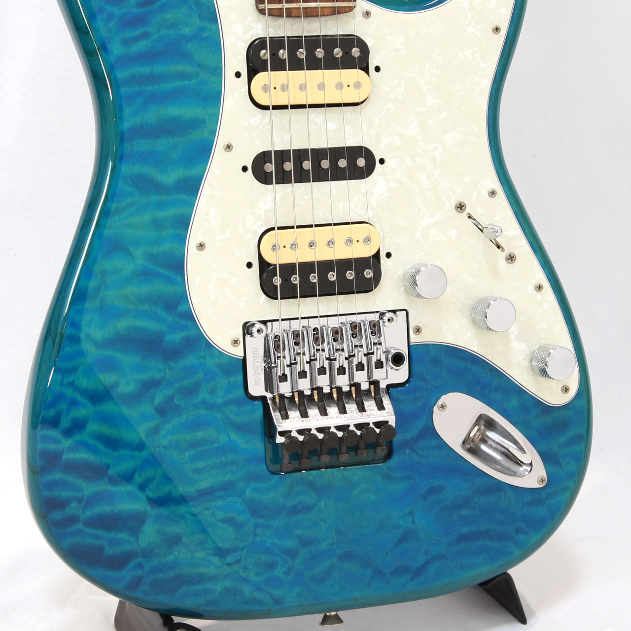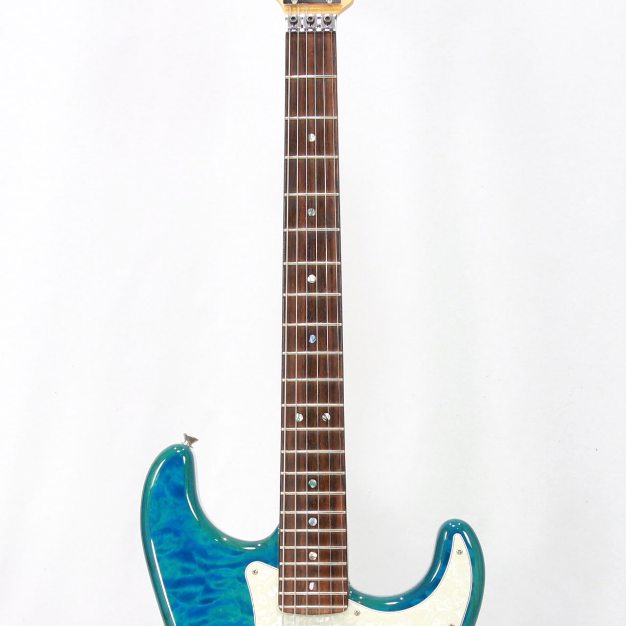 基になっているのは2011年にカスタムショップより発売された「Michiya Haruhata Stratocaster III」。あらゆるアイディアを詰め込みつつ、キルトトップのカリビアンブルーフィニッシュが爽やかな本機は、TUBEやソロワークなど様々な活動を通じてアイコニックな存在感を放っています。