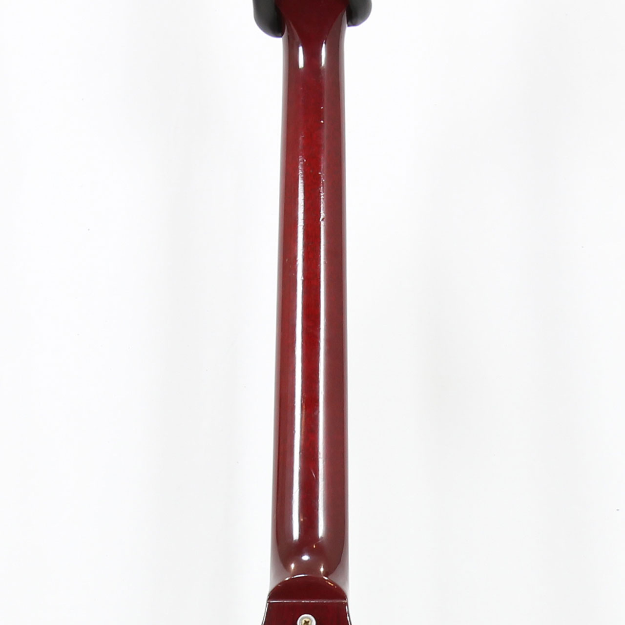 全体的に使用感は多数ありますが、プレイに支障のあるような致命的なダメージはありません。フレット減りもそこまで無く、ローポジションで多少の減りは見られますが今すぐリフレットや擦り合わせの必要は無さそうです。当店入荷時にステッカーが貼られており、それの剥がした事による色ムラがボディに数か所、ピックガードに1ヵ所あります。