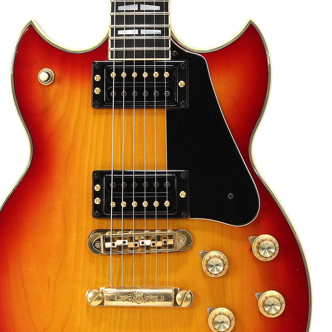 当時はギブソンレスポールに対抗する日本製ギターとして大人気だったSGシリーズ。本機は1980年製と思われます。