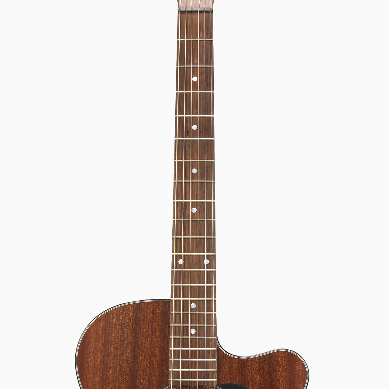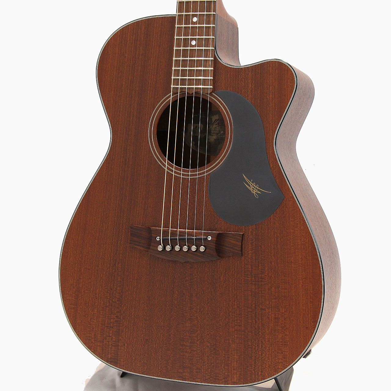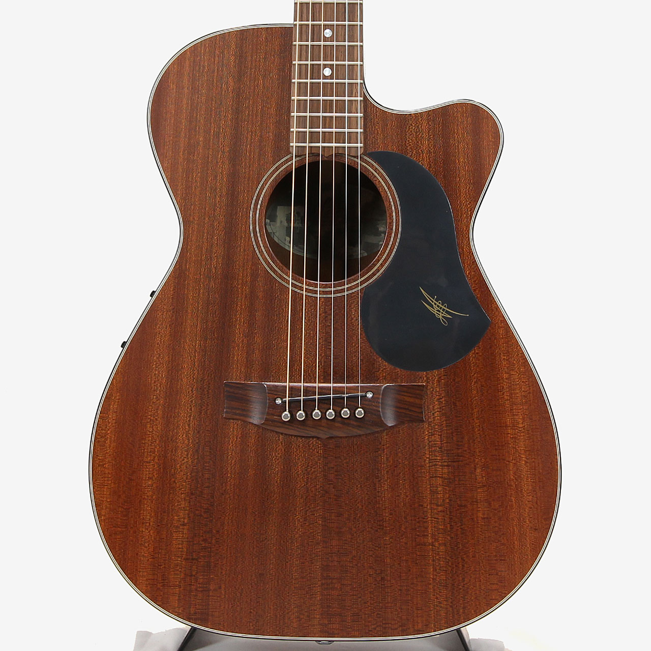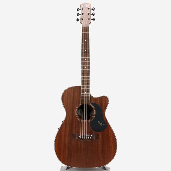 トップ+バック&サイドにSAPELE(アフリカンマホガニー)を採用した、オールマホガニーモデルで、ネック材にはフィジーマホガニーを採用。ブリッジと指板にインディアンローズウッド、ロゼッタにはシンプルなピンストライプ採用しています。