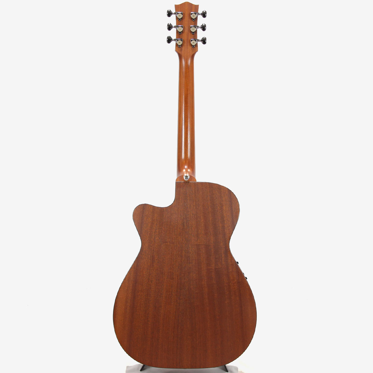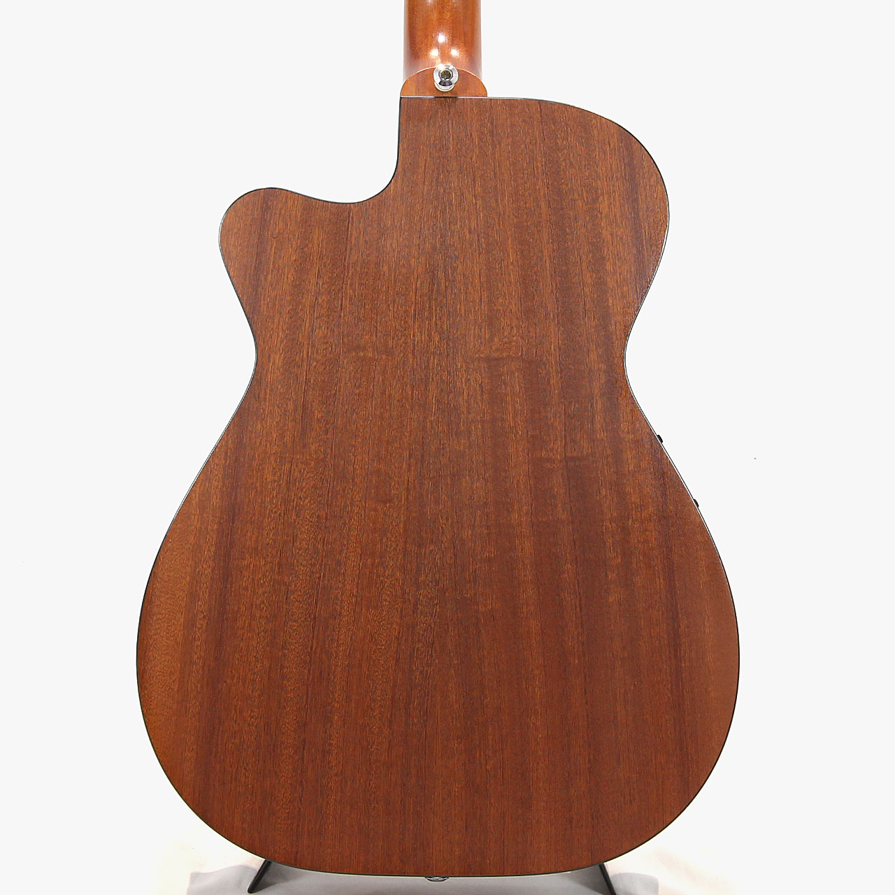 サウンドですが、スプルーストップ材トップより単音のサスティーンはやや抑えられ、サテンフィニッシュのオールマホ系にありがちなシャキシャキした印象よりウォームで暖かい印象。ストロークの歯切れ良さを残しつつ暖かみのある優しい包み込んでくれるようなサウンドですので、フィンガーピッキングだけでなく弾き語りにもバッチリなモデルです。