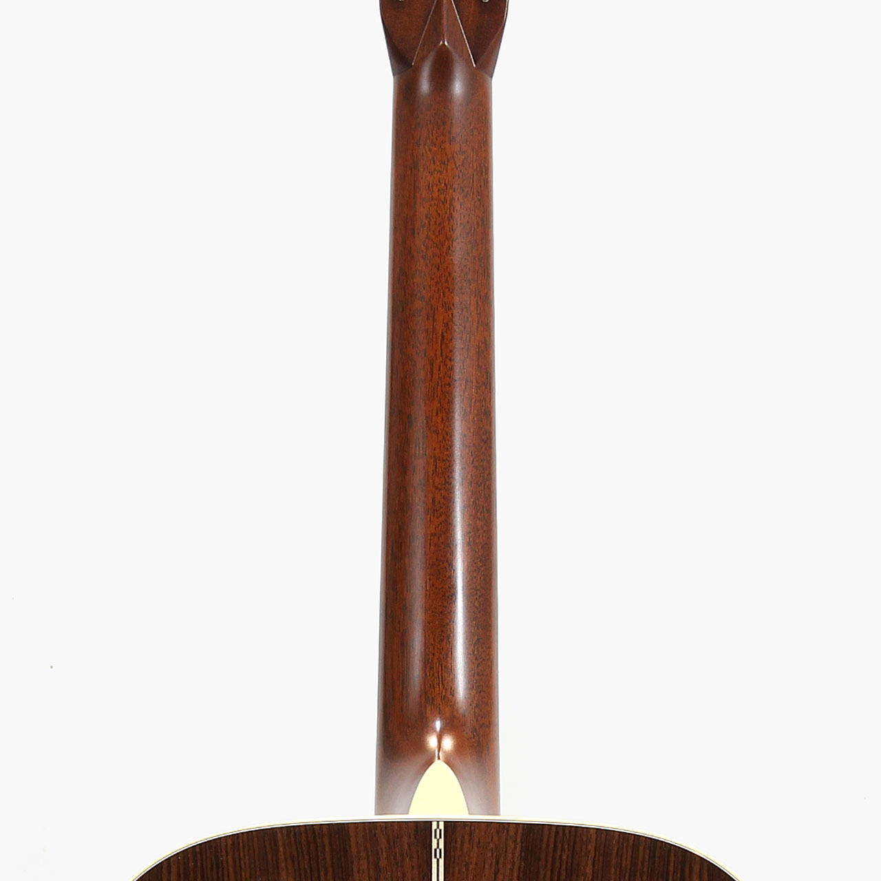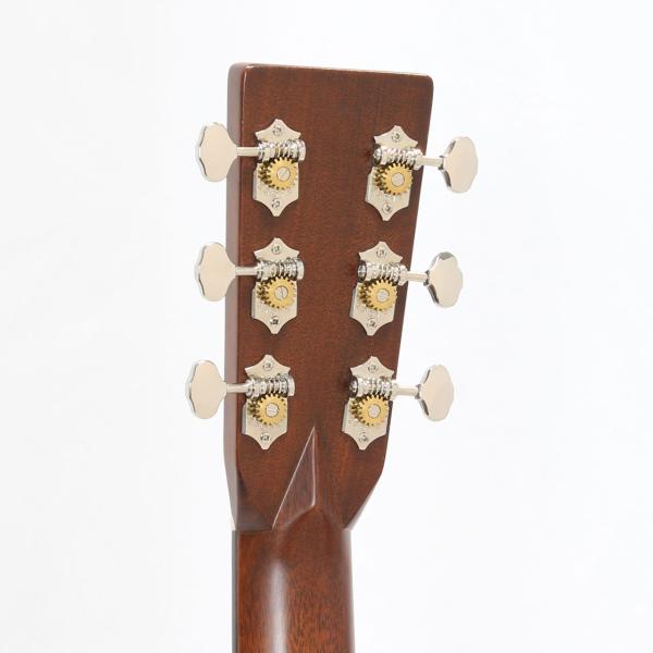シトカスプルース材TOP(スタンダードXスキャロップド)、インディアンローズウッド材SIDE&BACK、セレクトハードウッド材ネック(ソフトVシェイプ)、エボニー材指板&駒、632.5mmスケール、44.45mmナット幅、シャーラー製ニッケル/オープンバック・ペグ、ヘリンボーントリム、オールドデカールMartinロゴ、ダイアモンド&スクエア指板インレイ、エイジングトナー・フィニッシュのスペック。