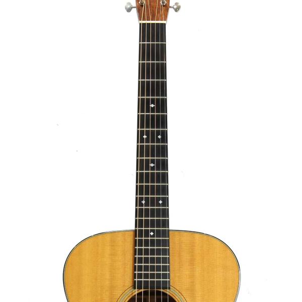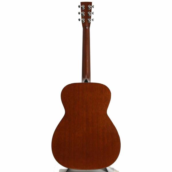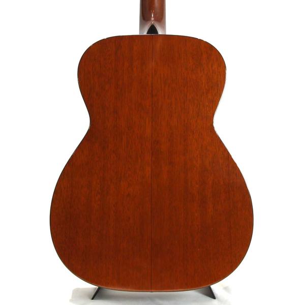 やや小ぶりなOMシェイプながら剛性を感じるがっしりとした鳴りです。強めのピッキングでも音像が潰れずボディ鳴りもしっかりついてきてくれるパワフルなギター。マホガニーの音色もあり全体的な音のまとまりがよく中音域にピークを持ちつつもモタつきすぎない絶妙なバランスの立ち上がりの良さ。低音域にも存在感がありフラットピックでもフィンガーでも迫力のあるサウンドが楽しめます。
