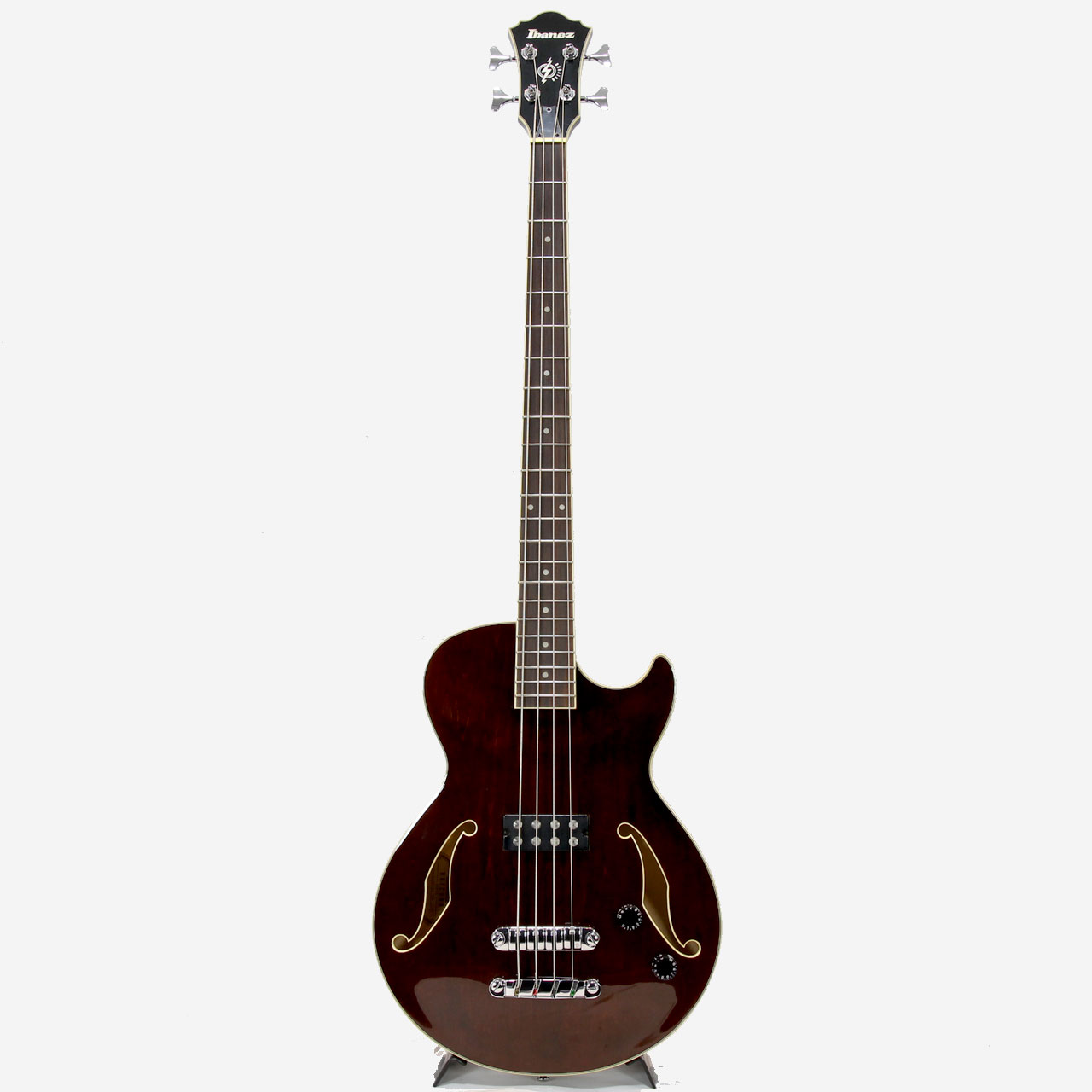 国内外で高い評価を受ける Ibanez の中でも、個性的なデザインとサウンドが魅力のセミアコースティック・ベース「AGB140」 の中古品です。