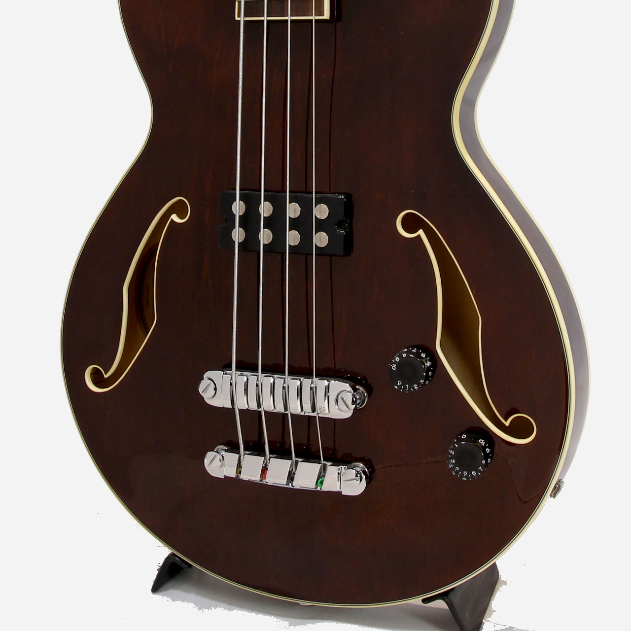 ソリッドボディのベースとは異なる響きを持ち、歌もの、ロック、アコースティック編成など、幅広いジャンルで活躍します。