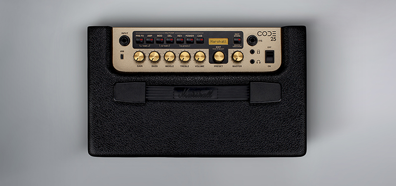 結果、あらゆるプログラミングが可能となった「CODE」は、伝統的なマーシャルサウンドから、現代マーシャルのトーンまで忠実にモデリングしています。