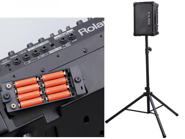 ◎ 3段階のパワー・モードを装備、演奏環境や演奏時間に合わせて切り替え可能(ECO:20h/10W, NORMAL:10h/25W, MAX:5h/50W *ニッケル水素充電池使用時)