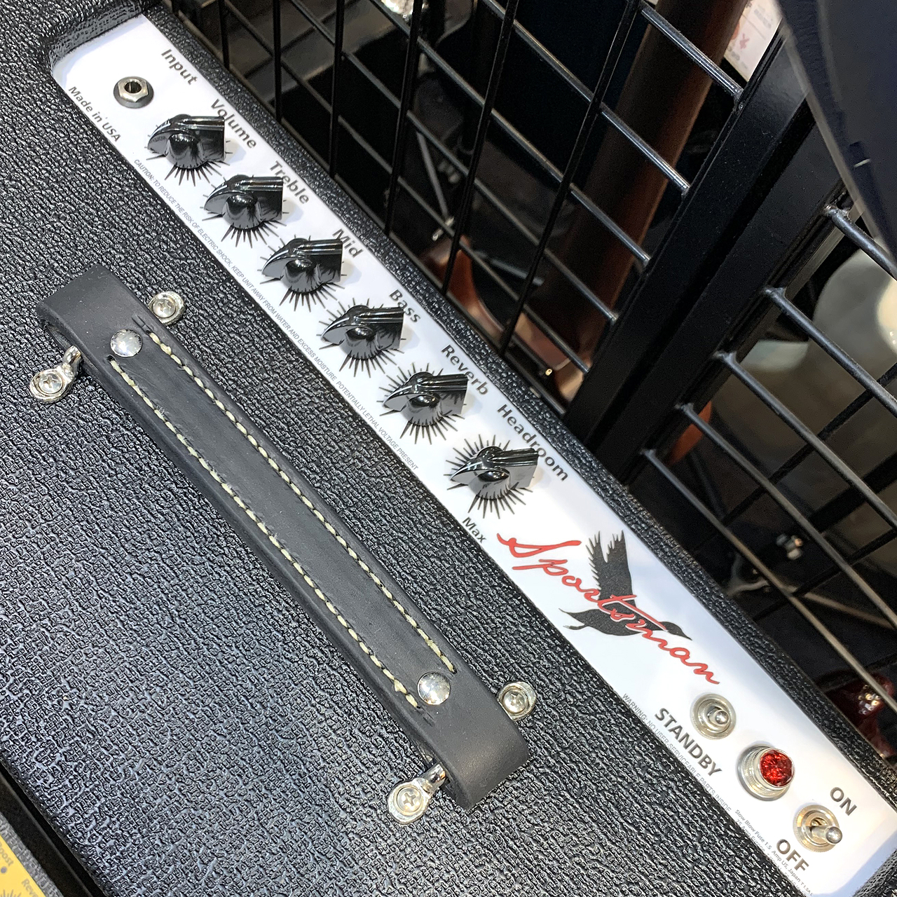 今回入荷したSportsmanは60年代半ばのアメリカン・リバーブ・アンプのピュアでクリアなサウンドと、50年代後半のよりアグレッシブなデュアル6V6出力段を融合させながら、Volumeコントロール、ワイドレンジなMidノブ、Headroomコントロールといった独自のコントロールを追加したアメリカンサウンドを再現した1台。