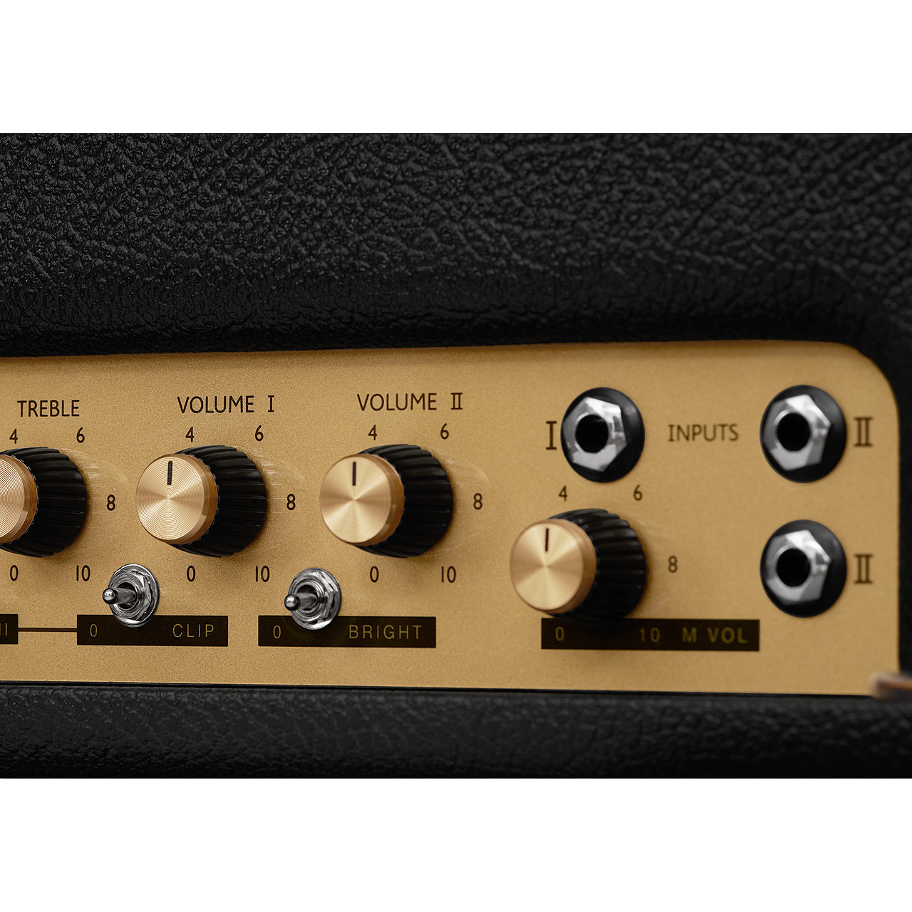 つまみを時計回りいっぱいに回した状態が、オリジナル1959と同様のボリューム設定です。ボリュームを下げることで、より小さな音量でも自然な歪みを得ることができます。また、チャンネルIとIIをリンクさせて、2つのプリアンプを同時に鳴らす伝統的な使い方も可能。