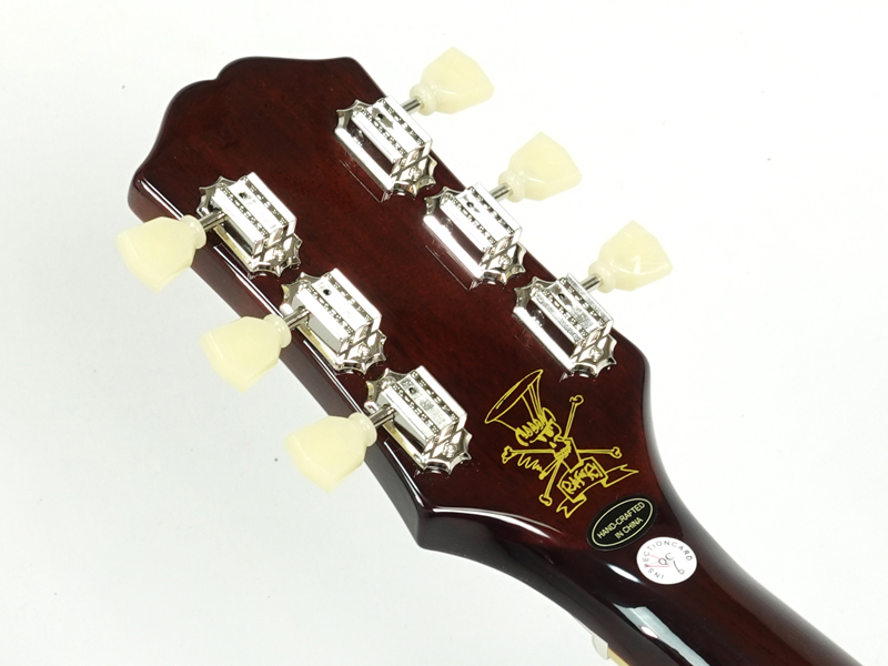 ヘッドストックの裏に描かれたスラッシュの「Skully(スカリー)」ロゴ、トラスロッドカバーに描かれたスラッシュのサイン、そして同じくスラッシュの「Skully(スカリー)」ロゴが入ったカスタムハードシェルケースが付属します。ファンならずとも注目の一本です。
