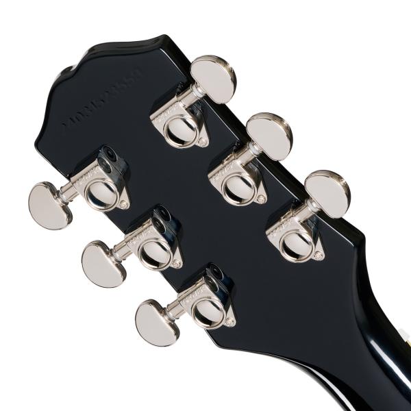 SGスタンダードはプレイヤーにフィットするコンター加工付きのボディ形状を持ち、ダブル・カッタウェイにより22フレット全てのポジションへの容易なアクセスを実現しています。セットネック方式でジョイントされたネックはSGの高いサスティン特性に寄与しています。ネックシェイプはスリム・テーパー Cプロファイルが採用され、素早い滑らかなフィンガリングを可能にしています。ミディアム・ジャンボ・フレットが打たれたローレル指板にはパーロイド素材のディッシュ・インレイが施され、12インチの指板R(ラディアス)採用によりロー・ポジションでのコード・プレイやハイ・ポジションでのベンディングの両方をストレスなく行えます。Grover Rotomaticチューナー、Graph Techナット、Epiphone LockTone Tune-O-Maticブリッジ、Stop Barテイルピース等の採用により、安定したチューニングと正確なイントネーションをギタリストにもたらします。