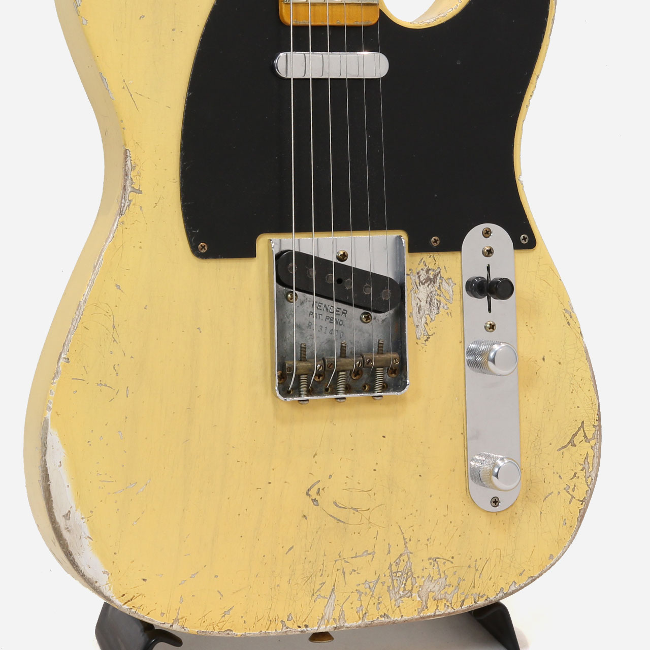 ブロンドカラーで彩られた1ピースアッシュボディにメイプル1ピースネックを採用、ブラックガードが特徴的な1952年モデルを見事に再現した1本となっております。