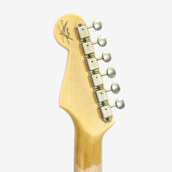 ウェザーチェックや細かいキズなども美しく表現されており、本器のヴィンテージブロンドカラーと相まってまさに長年使用されてきたようなルックスでカスタムショップの職人の意気込みを感じる仕上がりとなっています。