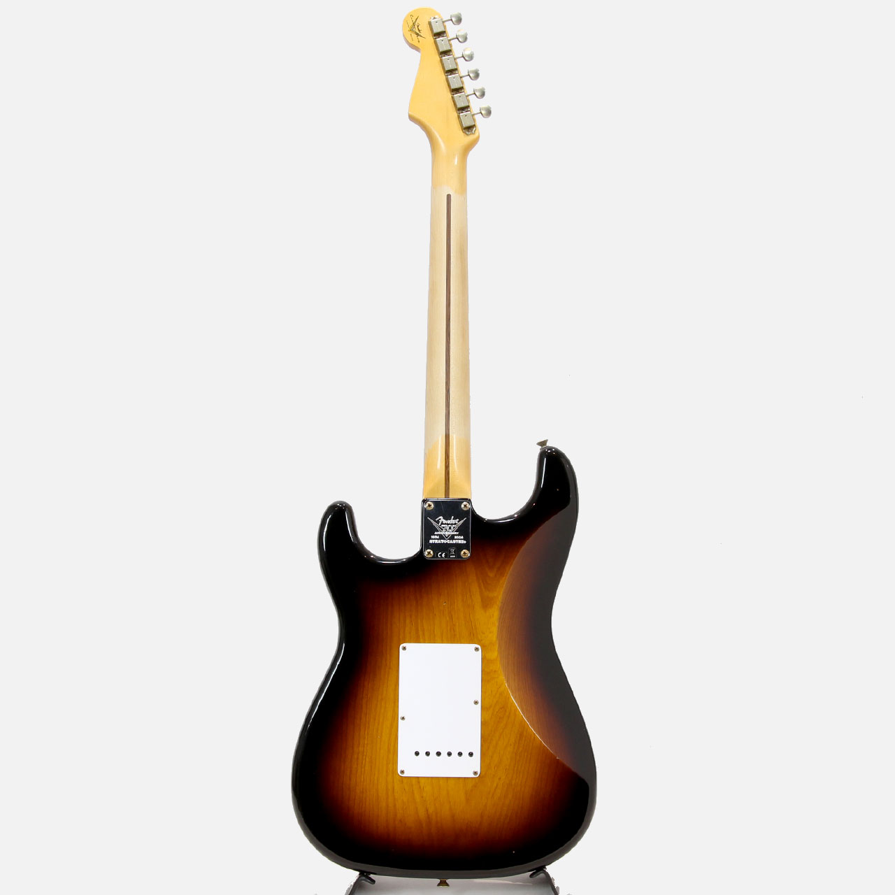 その他、1-plyホワイトピックガードとシリアルナンバー入りバックプレート、1954年スタイルのABS製ホワイトピックアップカバーとコントロールノブ、カスタムショップ製ヴィンテージシンクロナイズドトレモロ、ヴィンテージスタイルチューニングマシン、ディスクストリングツリー、特別な70th Anniversary Stratocasterネックプレートといったプレミアムな仕様を備えています。