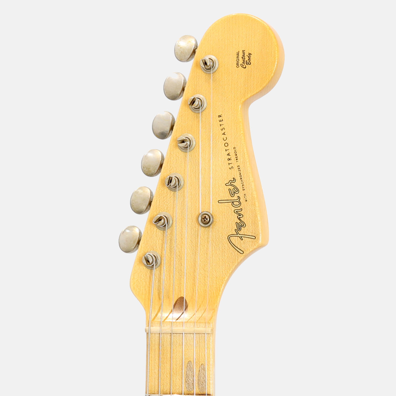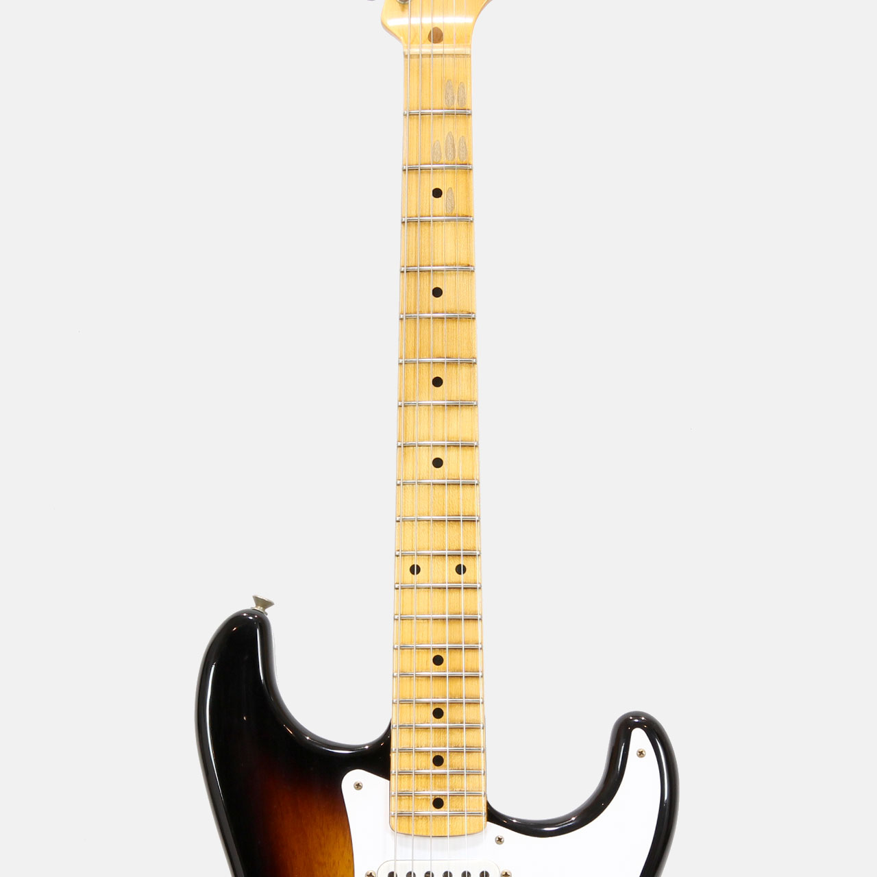ワンピースクォーターソーンメイプルネックは、1954年7月に製作されたストラトキャスターネックをベースにデザインされており、特別な70th Anniversary Soft "V "シェイプです。21本のミディアムヴィンテージ(47095)フレットと、通常よりも少し幅が狭い1.625インチ幅ボーンナットを採用した7.25~9.5インチ仕様ヴィンテージコンパウンドラジアス指板、クリアでベルのようなハイエンドとクラシックなストラトキャスターのヴォイシングを提供する3基のカスタムショップ製Hand-Wound '54 Stratピックアップ、ワックスペーパーキャッパシターと5ウェイスイッチングを採用したVintage '54 Stratワイヤリングを備えています。