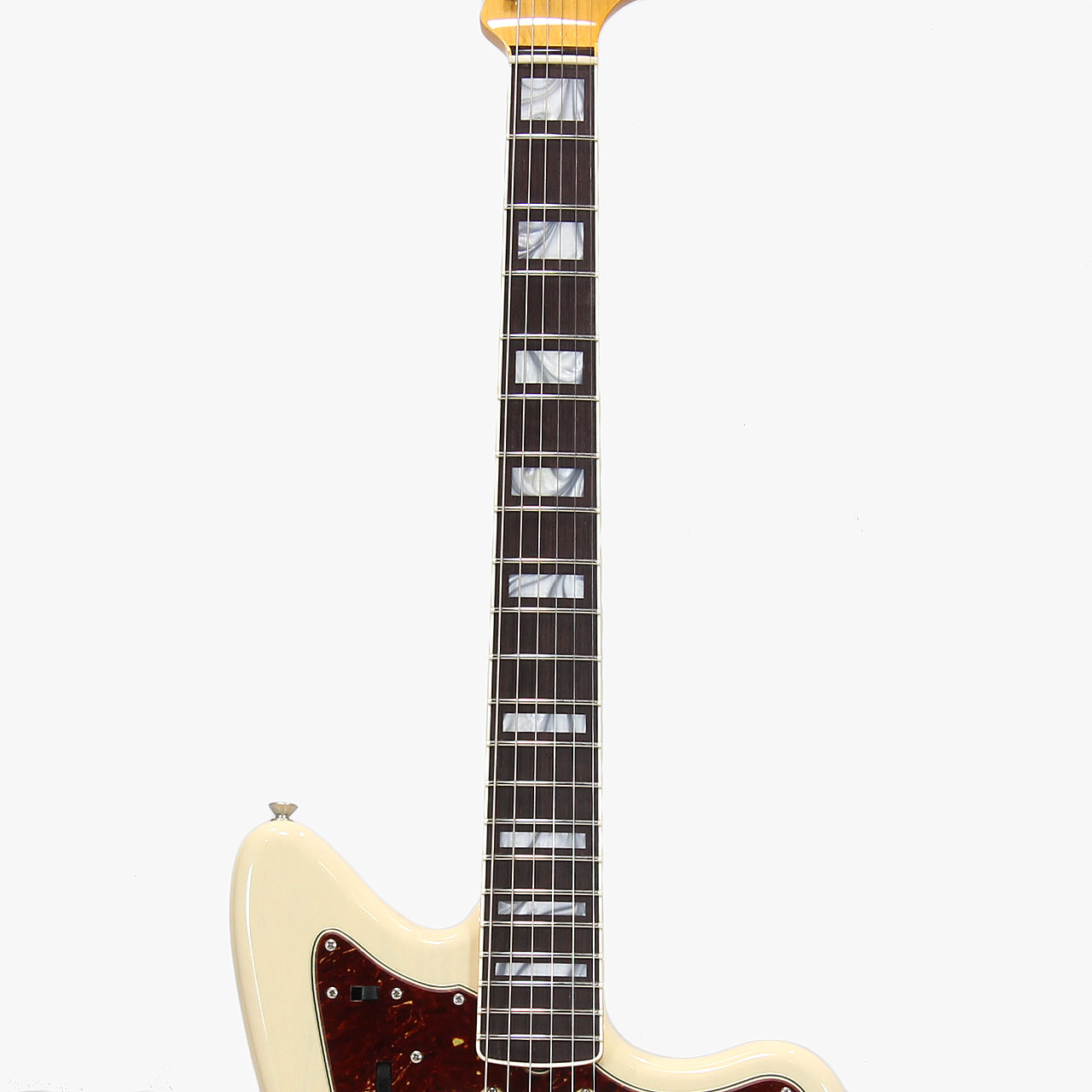 やや厚みのある1962 Jazzmasterシェイプのメイプルネック、ラウンドローズ指板のウッドスペック、ネック側もバウンドネックとパーロイドブロックインレイ仕様となっており、ドットポジションモデルとは異なる高級感ある仕様となっております。
