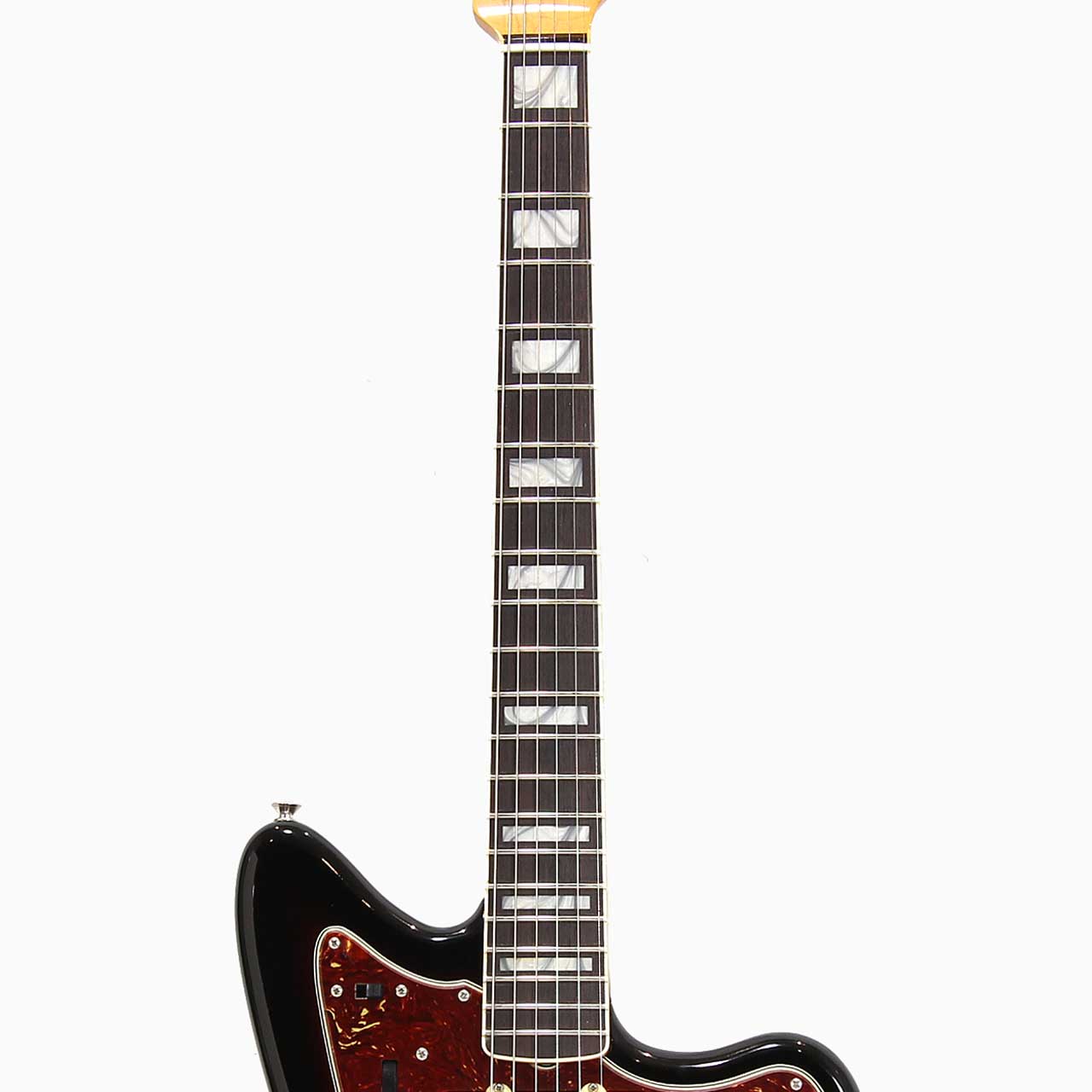 やや厚みのある1962 Jazzmasterシェイプのメイプルネック、ラウンドローズ指板のウッドスペック、ネック側もバウンドネックとパーロイドブロックインレイ仕様となっており、ドットポジションモデルとは異なる高級感ある仕様となっております。