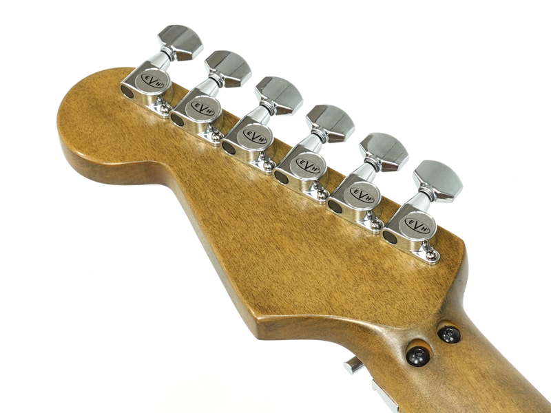 その他の特徴としてはホワイトスカート型のストラトスタイルシングルボリュームコントロールノブ("TONE"と表記)、カスタムブラックピックガード、リメイクされたクロームハードウェア、標準的なストラップボタン、EVHネックプレートなどが挙げられます。