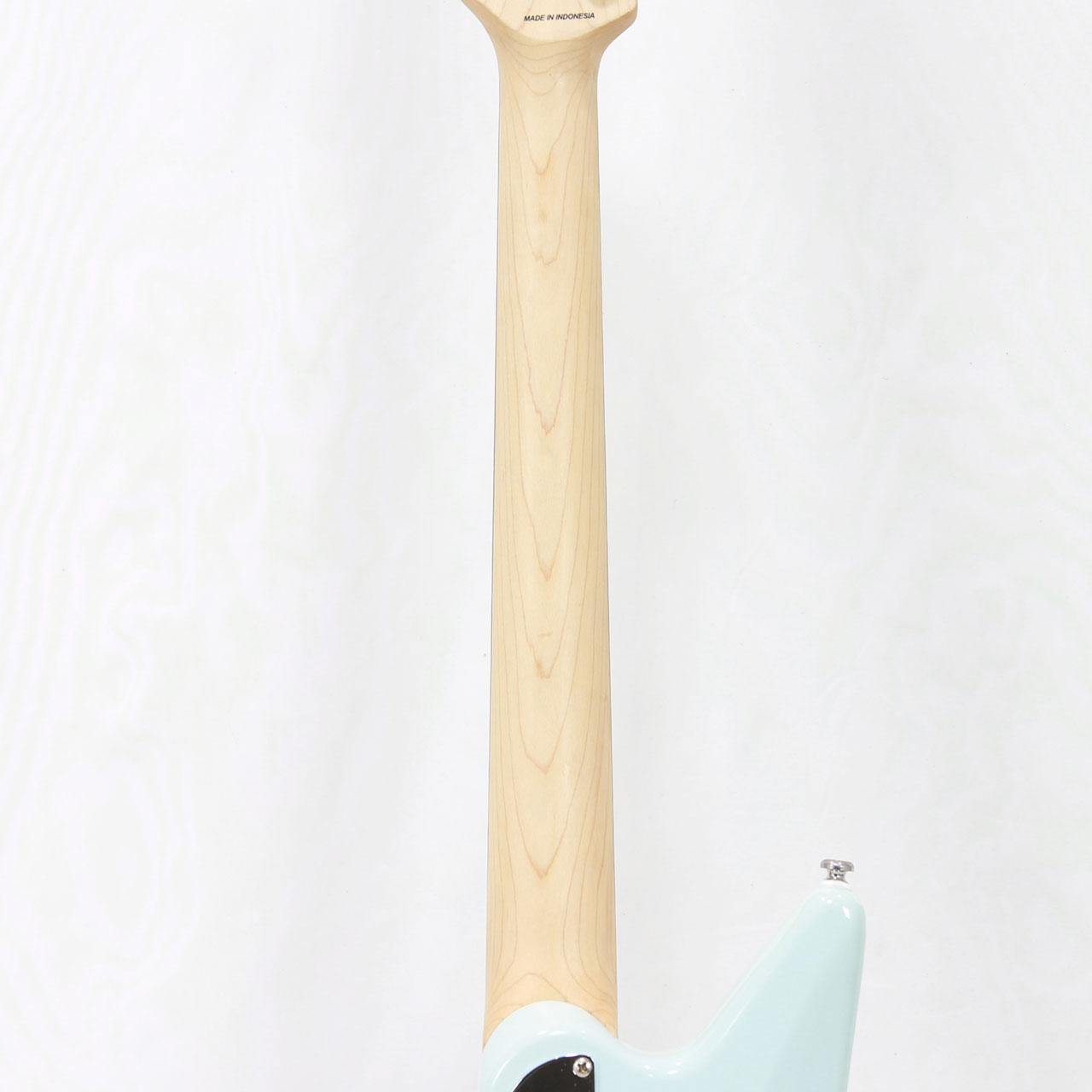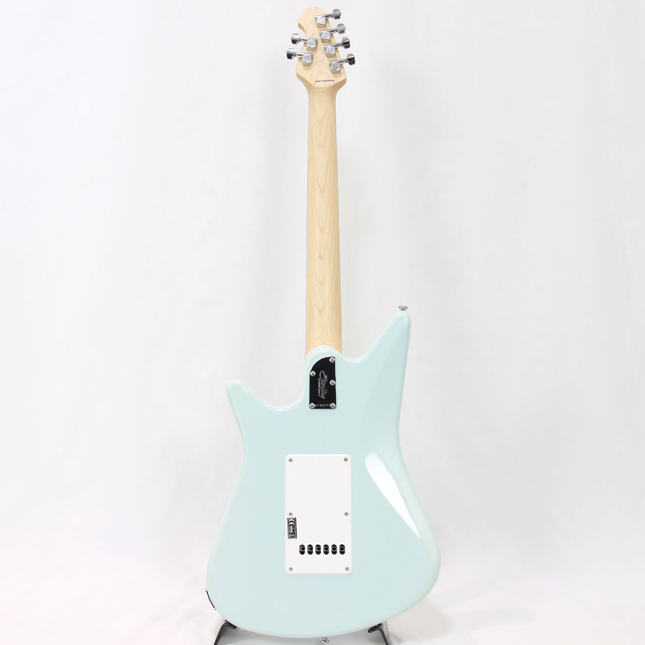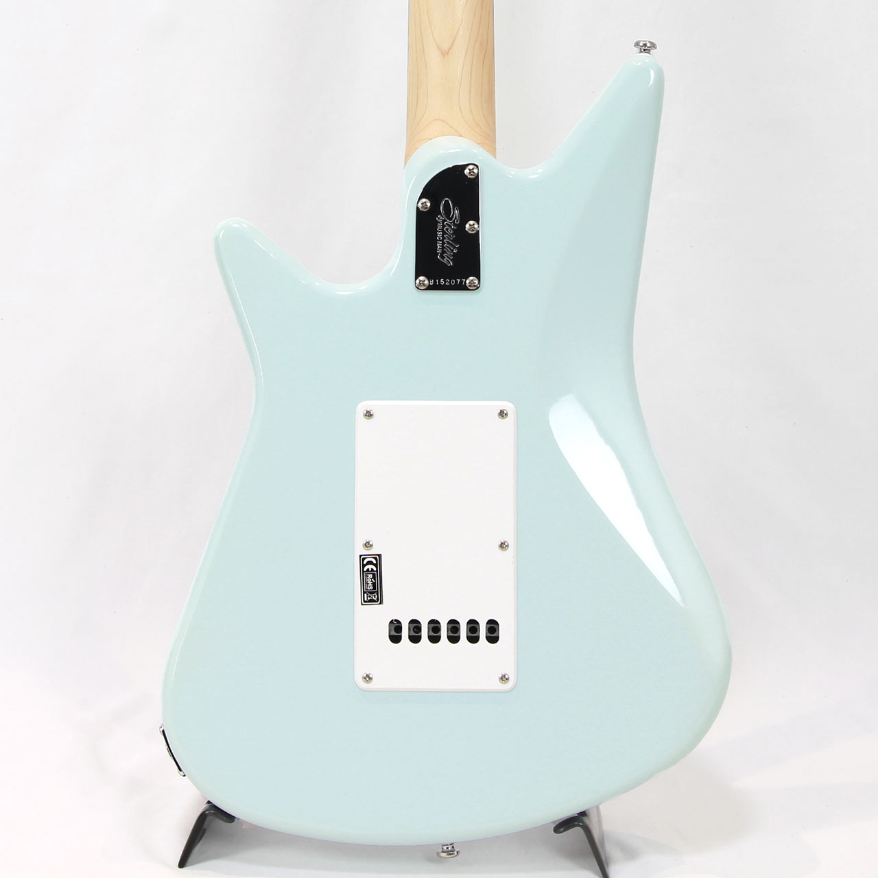 レトロ感のあるボディシェイプとピックガード、カバードのハムバッカー、ポップなダフネブルーですがどこかビンテージ感漂うルックスも個性的です。