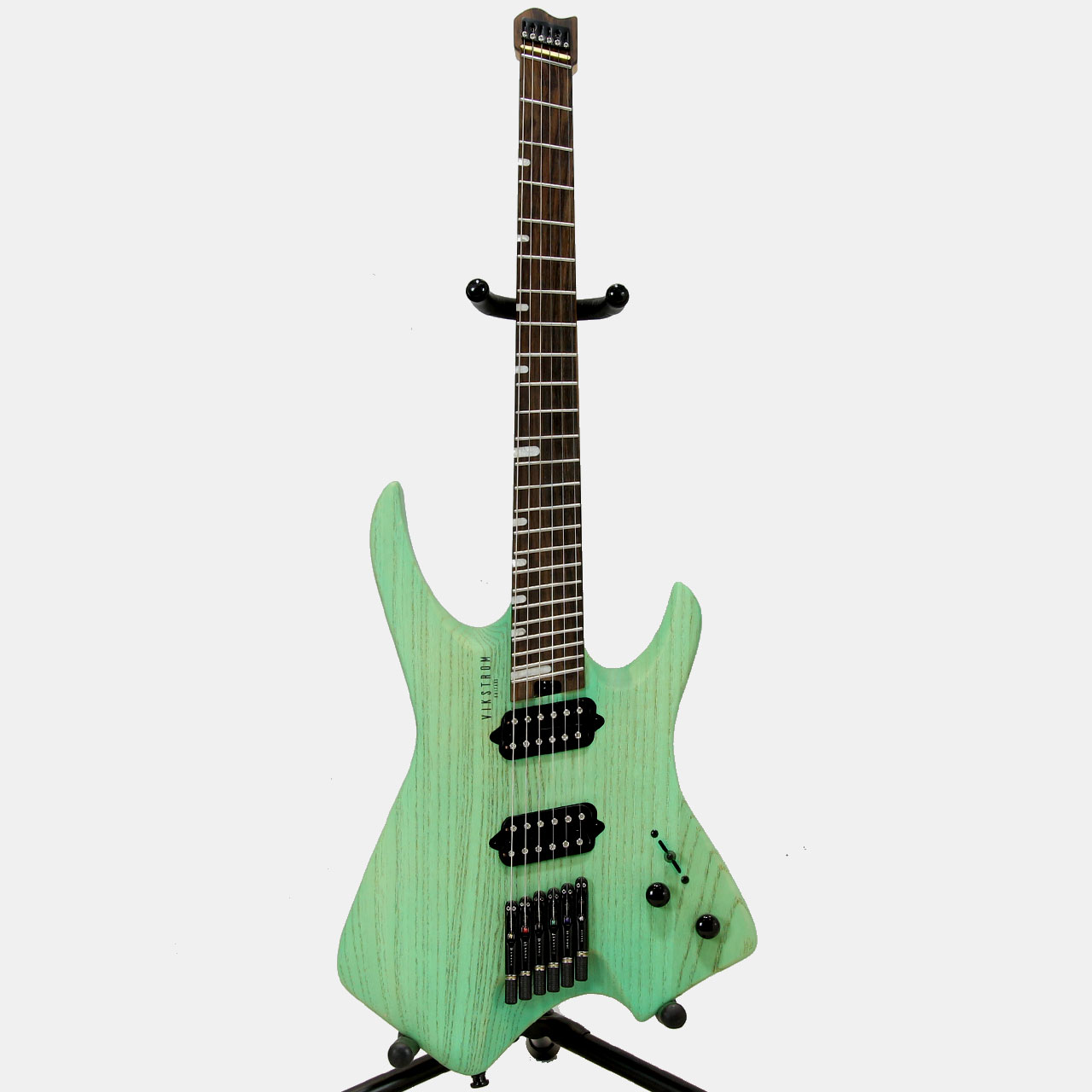 アッシュボディをマットなオープンポアで仕上げた本機。ネックもメイプル/サペリの5ピース構成で高い剛性を誇ります。マルチスケール、ステンレスフレットでモダンヘッドレスギターに求められる明瞭でパワフルなサウンドをアウトプットしてくれます。取り回しも良くプレイアビリティも良好!!