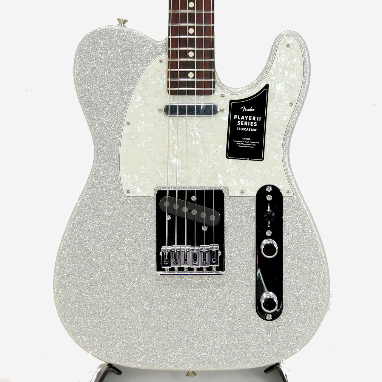 75th Anniversary Thunderbolt Telecasterピックアップは、深みがありながら明瞭でパンチのあるトーンを生み出します。その他、6ブロックスチールサドル式スルーボディブリッジ、ClassicGearチューナー、クロムハードウェア、4-plyパーロイドピックガードといったプレミアムな特徴を備えています。 75th Anniversary Player II Telecasterは、クラシックなテレキャスターをベースに、現代的な装備と高級感のあるスパークル仕上げを兼ね備え、オーディエンスを魅了しながらも伝説的なプレシジョンベースサウンドを奏でたいプレイヤーに最適な一本です。