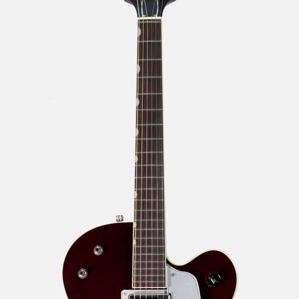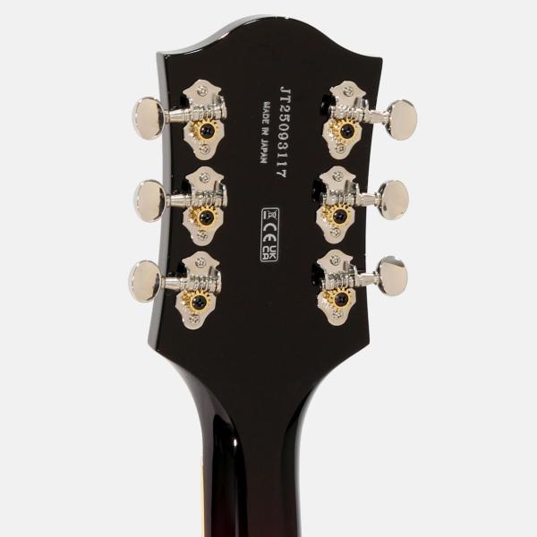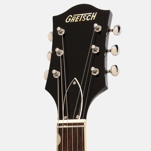 ロックンロールなトーンと快適な演奏性のために開発されたこのギターは、ニッケルメッキのGアロー・コントロールノブ、エイジド・ホワイトバインディング、ヴィンテージスタイルのラッカー・フィニッシュ、エイジドパーロイド・サムネイルインレイを採用。グレッチロゴ入り、厚いヴィンテージ・スタイルのシルバー・プレキシピックガード、ニッケルメッキ加工のGrover® Sta-Tite™チューナーなど、グレッチファンが望む、伝統的な仕様を備えています。