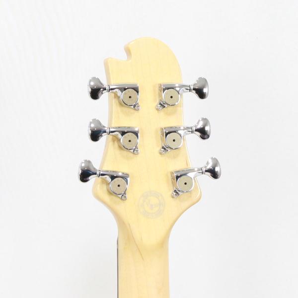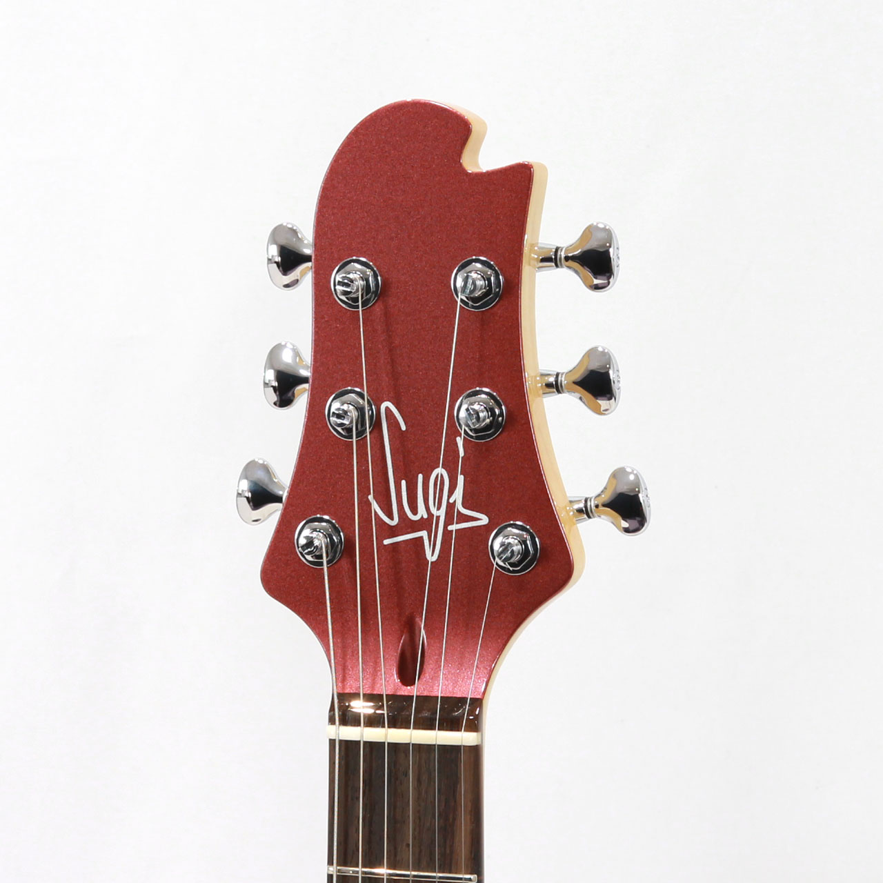 Sugiの専売特許とも言えるエキゾチックウッドをあえて配さずカラフルなカラーリングで仕上げた本機。楽器の輪郭がハッキリする分、ボディシェイプのスタイリッシュさや抱えた時の立ち姿が引き立ちますね。杉本氏のデザインセンスを存分に体感できるのはある意味DS499かもしれません。"実戦でガンガン使うギター"を目指した1本です。