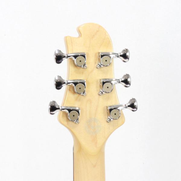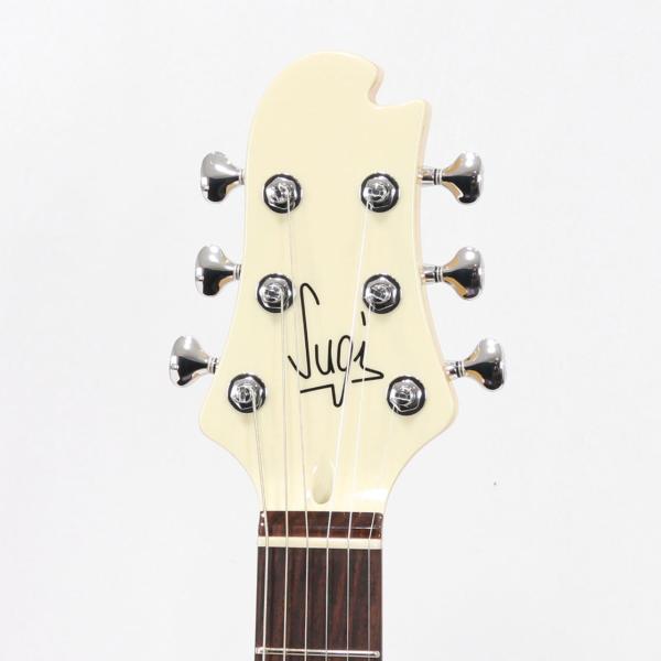 Sugiの専売特許とも言えるエキゾチックウッドをあえて配さずカラフルなカラーリングで仕上げた本機。楽器の輪郭がハッキリする分、ボディシェイプのスタイリッシュさや抱えた時の立ち姿が引き立ちますね。杉本氏のデザインセンスを存分に体感できるのはある意味DS499かもしれません。"実戦でガンガン使うギター"を目指した1本です。