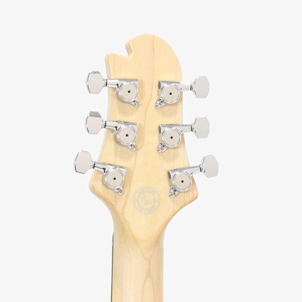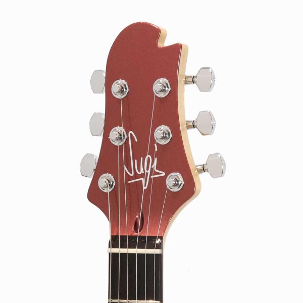 Sugiの専売特許とも言えるエキゾチックウッドをあえて配さず仕上げた本機。楽器の輪郭がハッキリする分、ボディシェイプのスタイリッシュさや抱えた時の立ち姿が引き立ちますね。杉本氏のデザインセンスを存分に体感できるのはある意味DS499かもしれません。