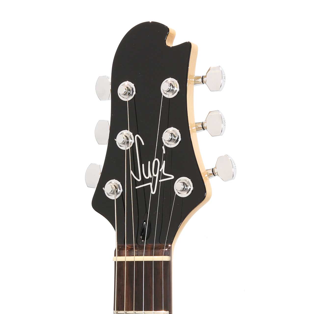 Sugiの専売特許とも言えるエキゾチックウッドをあえて配さず仕上げた本機。楽器の輪郭がハッキリする分、ボディシェイプのスタイリッシュさや抱えた時の立ち姿が引き立ちますね。杉本氏のデザインセンスを存分に体感できるのはある意味DS499かもしれません。