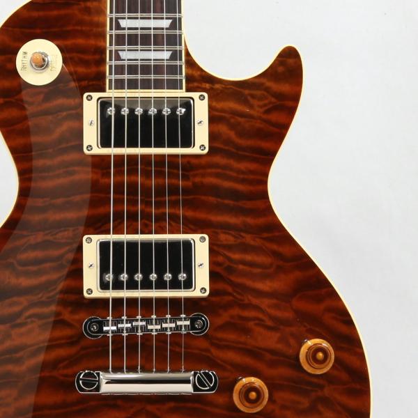 メイプルトップ、マホガニーバックのレスポール王道のボディスペック。重圧なサウンドに切れ味を持ち合わせジャンルにこだわらずロックサウンドを作り出します。