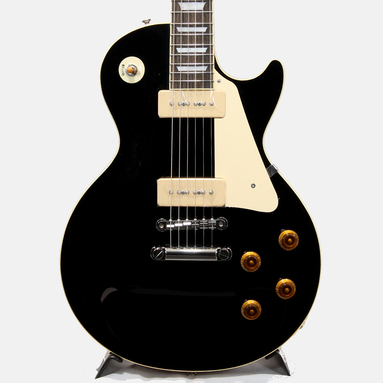 メイプルトップ、マホガニーバックのレスポール王道のボディスペック。重圧なサウンドに切れ味を持ち合わせジャンルにこだわらずロックサウンドを作り出します。