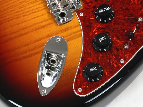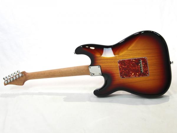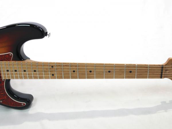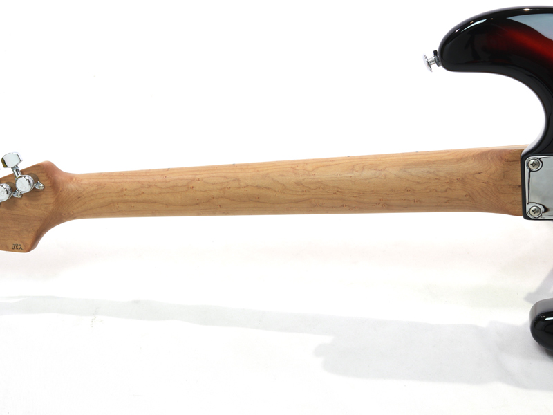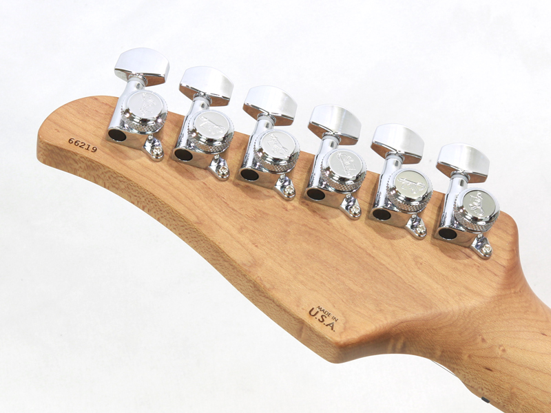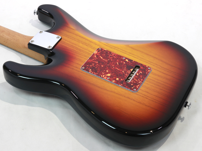 ボディシェイプはClassic S、ボディウッドマテリアルはここ数年注目を集めている、非常に軽量で美しい木目を持つポロウニア(=桐)。カラーは木目を生かす3 Tone Burst。プラスチックパーツは、ワイルドな雰囲気を醸し出す、べっ甲柄ピックガードにブラックカバー&ノブの組合せ。