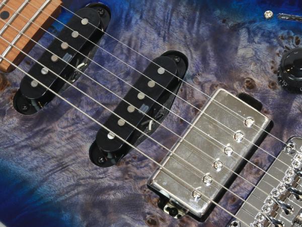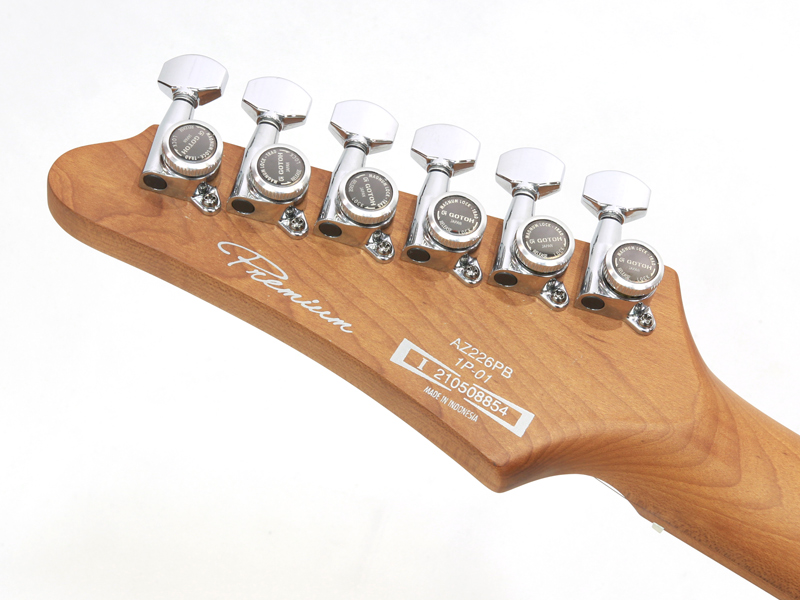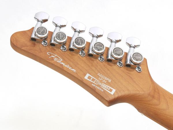 ピックアップにはSeymour Duncan社とのコラボレーションによって生まれたAZ専用ピックアップを搭載。歪ませてもどこかに原音のクリーンさを残す様、出力を抑え気味にして、ピッキングの追従性と再現性にポイントをおいて設計。