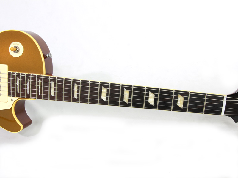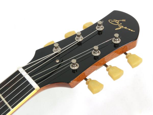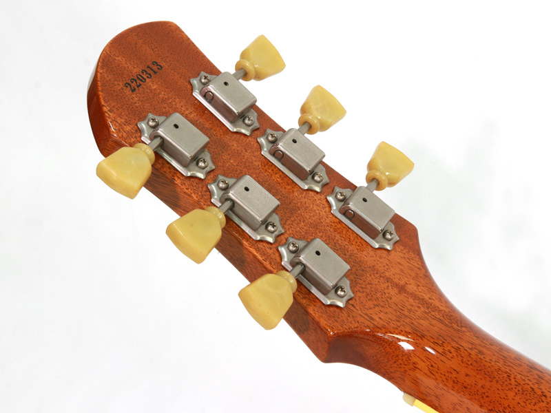 近年、某カリスマギタリストの愛用によって盛り上がっているラップアラウンドブリッジスタイルのLPタイプですが、ジェフベックを筆頭に元来、愛用者の多いスタイルです。LPのアーチトップによるリッチな中域とアコースティカルで楽器の鳴りを存分に味わえる仕様です。